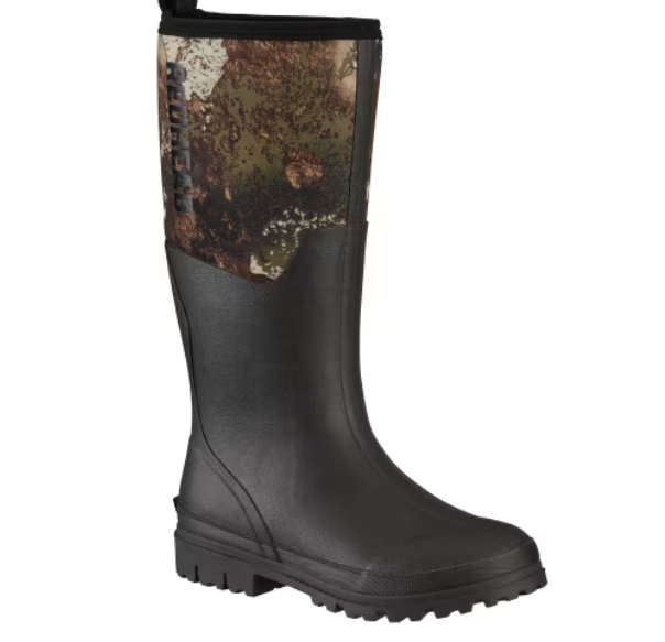 RedHead® Camo Utility Waterproof Rubber Boots for Men keep your feet dry and comfortable around the yard, the farm, the woods, or wherever your day takes you. These RedHead Camo Utility Boots provide 100% waterproof protection, natural 5mm Insulation, and the lightweight of neoprene. Durable rubber overlays reach halfway up the shin for ample protection from rocks, sticks, and other hazards.