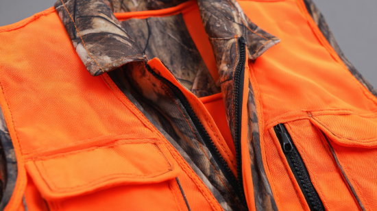 Field gear takes sustained punishment. Thorns, barbed wire crossings, abrasive tree bark, and repeated washing cycles are just a few of the stresses a good vest must absorb across multiple seasons. 100% polyester construction — the unanimous material choice among every vest featured on this list — is the right call for all of these reasons: it resists moisture absorption, dries quickly, maintains structural integrity through abrasive field contact, and most critically, holds its blaze orange color through dozens of machine washing cycles without the accelerated color loss that plagues cheaper cotton-blend alternatives.
