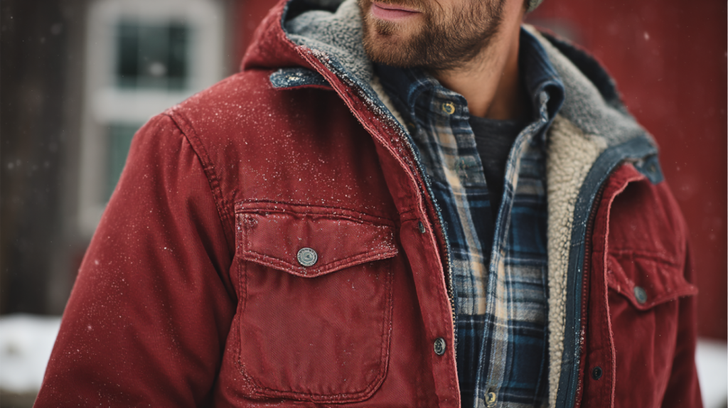 One of the most genuinely useful things about this jacket is its natural layering versatility across a range of conditions and temperatures. In mild autumn weather, pull it on over a basic long-sleeve tee and you’re sorted — the flannel lining delivers plenty of warmth for crisp morning temperatures without weighing you down. As the cold bites harder and the season progresses, layer it over a thermal base layer or a lightweight fleece and it becomes a seriously effective cold-weather system.